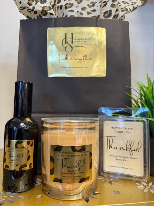 Indulge your senses and experience heavenly aromas with our custom, luxury candle line, room sprays, & car freshies. Our scents are God inspired. Each handcrafted candle/melt promises a long-lasting scent that transforms your environment into a blissful sanctuary. Elevate your ambiance with these exquisite scents – a must-have for every room or office!